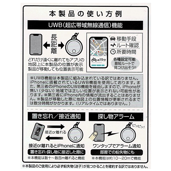 (探索範囲:数十~数百m)音で見つける:家中探しても見つからない時はワンタップでアラーム通知。(探索範囲:約10~20m)